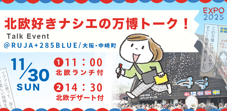 ナシエは、11/6(水)11時半から30分、万博、北欧パビリオンについてトークします🌈