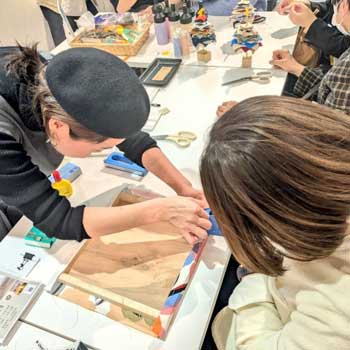 ✳️ことの葉さん(5.6日のみ)、神戸のお花屋さん。馬蹄を使ったクリスマスオーナメントワークショップ!パネル作りとツリー作りはケイットさん。2ブースとも大人気🌈✨